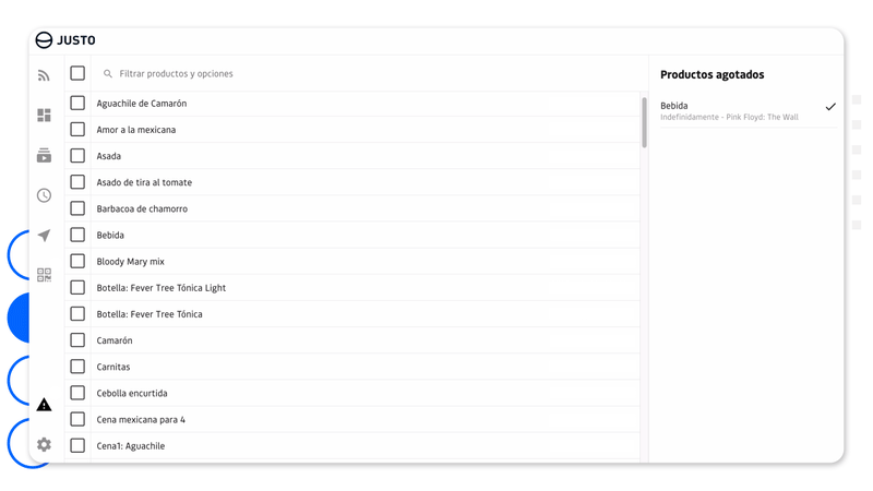 Para volver a dejarlos disponibles, haz click en el check a la derecha de cada producto.